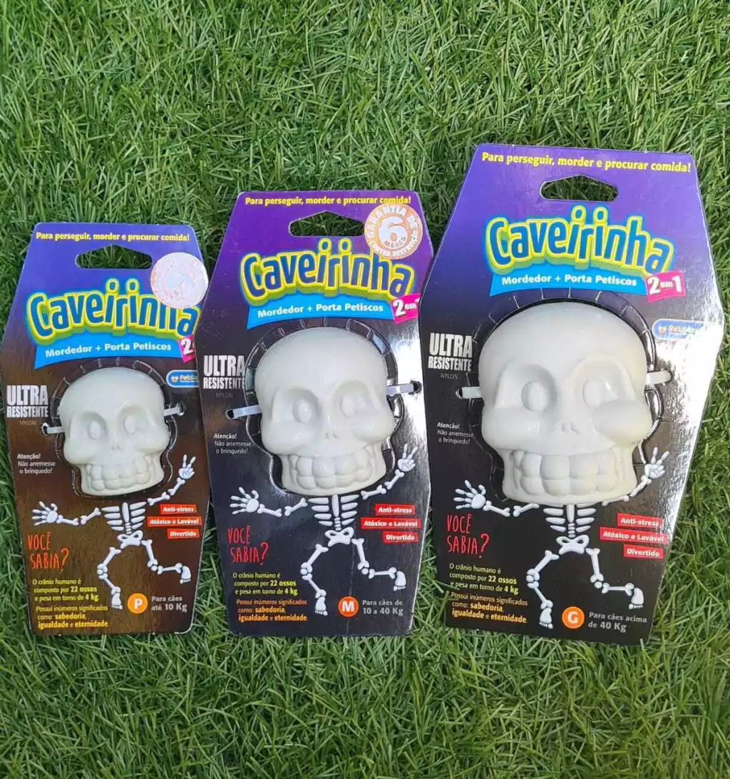 Para cães que adoram caçar: role a caveirinha no chão para seu cão persegui-lo e caçá-lo. Os movimentos irregulares deixarão o cão enlouquecido pela "presa". Não arremesse o produto pois é pesado e rígido.