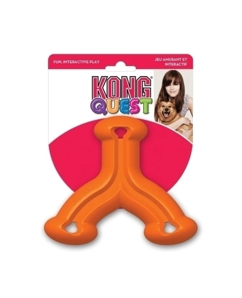 O KONG Quest Whishbone é um brinquedo particularmente lindo! Excelente para enriquecimento ambiental. Pode ser recheado virtualmente com qualquer coisa que o cão goste. Receitinhas estão disponíveis nas redes sociais. Ou invente a sua! Pode ser congelado. Perfeito para dar uma variada no uso do KONG Clássico. Possui uma aceitação muito boa e é muito recomendado por especialistas em enriquecimento ambiental. Ideal para cães com mordida leve à moderada. Para os cães com mordidas extremas, KONG Preto Extreme é o ideal. Todo cão precisa trabalhar por seu alimento. Kong Quest é uma alternativa maravilhosa para fazer com que eles sejam desafiados a isso.
