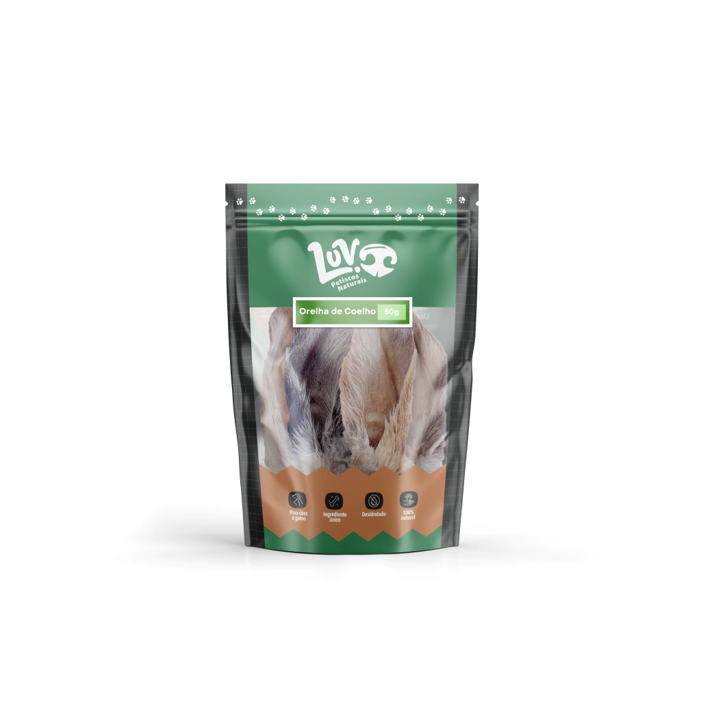 Contém 50 gramas de orelha de coelho (de 5 a 8 unidades).